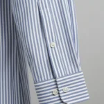 Cut in a traditional regular fit, this shirt provides a relaxed yet polished silhouette, allowing for maximum comfort and freedom of movement compared to a restrictive slim fit. The classic spread collar is perfectly structured for wearing with a tie or open for a smart, approachable look. With its meticulous stitching and quality finish, this striped cotton shirt embodies sophistication and durability.